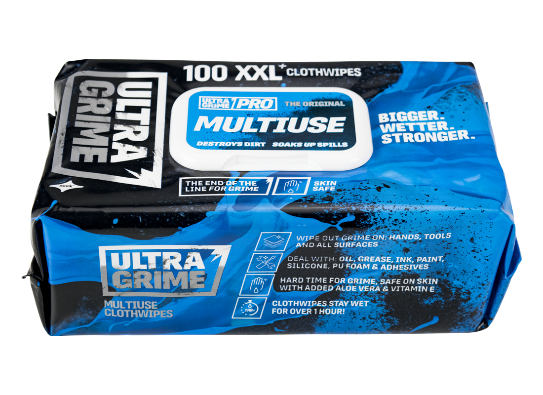 For whatever the jobs calls for, UltraGrime® Pro Multiuse wipes will be there to clean up the mess. This special formula is designed to handle any and all messes no matter your line of work. Whether you need to clean up oil, grease, ink, paint, silicones, or uncured PU foam, reach for your UltraGrime® Pro Multiuse Clothwipes to handle it.